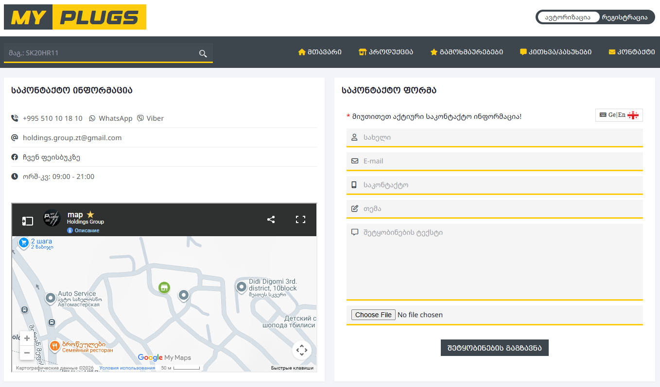 myPlugs აალების სანთლების ონლაინ მაღაზია 2017-09-24, 9:08 PM ბიზნესი და ფინანსები 190 0 1 2 3 4 5 საკონტაქტო: +995 510 10 18 10 სამუშაო საათები: ორშ-კვ: 09:00 - 21:00 ელ. ფოსტა: holdings.group.zt@gmail.com მისამართი: ქ. თბილისი, დიდი დიღომი ვებ მისამართი: ᴡᴡᴡ myPlugs ფეისბუკი: ꜰʙ myPlugs აალების სანთლები, myplugs, online store, spark plugs, svechebi Смотрите также: myPlugs აალების სანთლების ონლაინ მაღაზია zMarket წვრილი ტექნიკის ონლაინ მაღაზია Комментарии Минимальная длина комментария - 50 знаков. комментарии модерируются Добавить Защита от спама Отправить